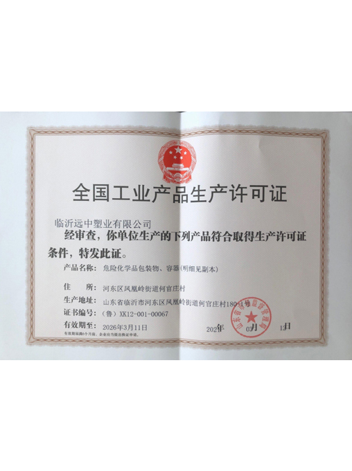 為保證產品質量達標,使管理規范化、程序化,公司于2017年5月獲通過了 ISO9001:2015中國質量體系認證;2017年3月獲得了《全國工業生產許可證》; 2017年9月通過了中華人民共和國江蘇出入境檢驗檢疫局《出口危險貨 物包裝容器質量許可證》認證,于2019年8月獲得由中國船級社簽發的型式